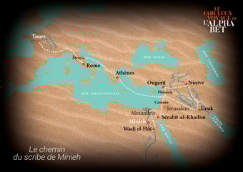 Le titre annonce la couleur : non seulement nous allons voyager mais ce périple sera fabuleux. L’auteur Jean-Claude Bonnaud s’est assuré la complicité de Philippe Ouzounian pour nous entraîner tout autour de la Méditerranée à la suite du scribe de Minieh, Ahmès, un Égyptien sans âge. Grand voyageur, Ahmès est allé dans le pays des Sumériens où fut inventée l’écriture il y a plus de 5 000 ans, « deux mille pictogrammes qui notaient en ressemblance, en miroir, les choses ou les animaux sur des supports en argile ».